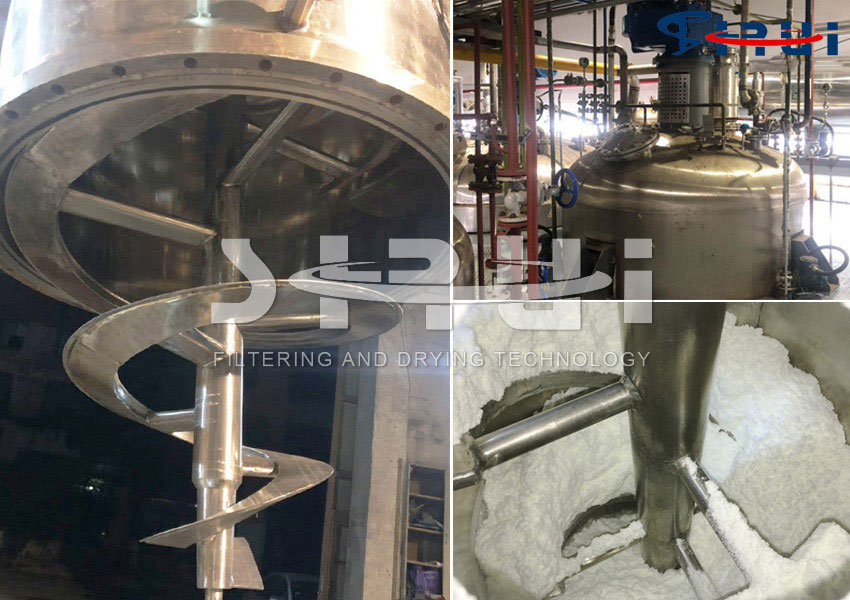 (2) 可用于反应、过滤、干燥三种操作,使三个单元设备的作用在这一台设备上完成,从而使设备成本、占地面积、劳动强度、能耗等都大大降低。