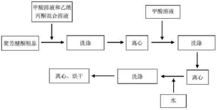 目前由亲电反应路线制备的聚芳醚酮的后处理纯化工艺大多较为复杂繁琐,每次处理时均会使用大量溶剂,且往往需要长时间反复洗涤,有时还需要采用高温高压的纯化方法,对设备要求较高,洗涤过后会产生大量废液,导致投入大,效率低,对环境影响大,从而限制其进一步发展和应用。