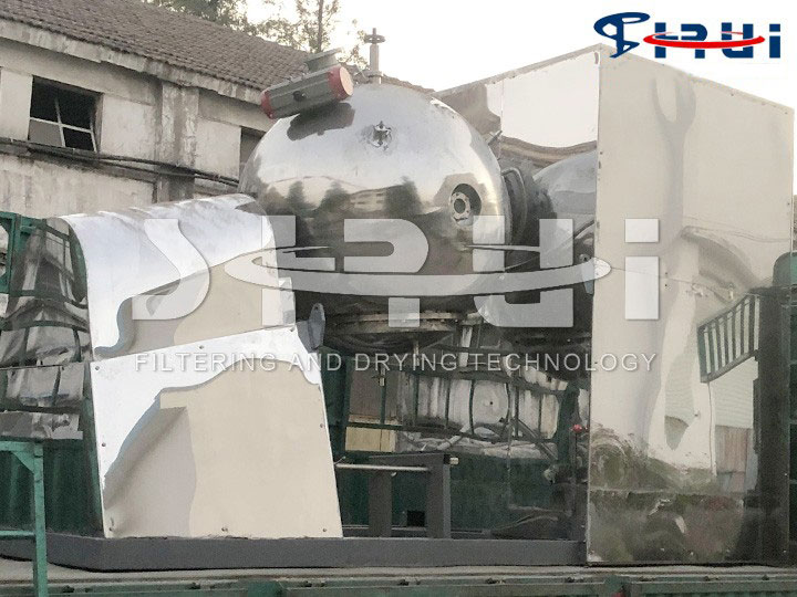 无锡双瑞机械针对很多物料在干燥过程中容易团聚结块,导致水分被锁在物料硬块内无法得到有效干燥等问题,研制开发了新型球形真空干燥机,干燥主体分为上球体和下球体,上下球体之间通过铰链连接,干燥器主体安装有将原料破碎制粒的破碎装置,用于防止原料泄漏的安装在上球体之间输出轴的密封装置,用于滤出料液的过滤装置和用于搅拌干燥混合反应的搅拌装置。该多功能球形干燥器增加了破碎结团成块物料的机构,能够获得颗粒大小较为均匀的物料,能够改善干燥效果、缩短干燥时间,获得颗粒大小均匀的物料。