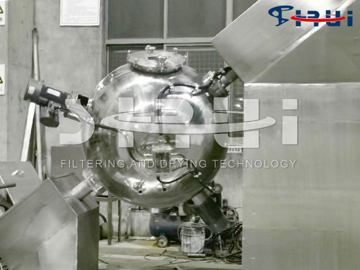 (1) 球形真空干燥器主体分为上球体和下球体,上下球体之间通过铰链连接,方便无死角清洗设备,特殊的结构设计,具有干燥、混合功能。