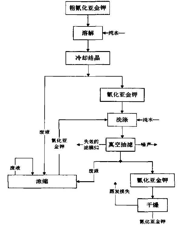 (1) 工艺流程过多,增加了控制难度。在金盐生产中一次结晶出的金盐纯度无法达到优质金盐所要求的质量分数,要提高金盐的产品质量,就必须进行重结晶。