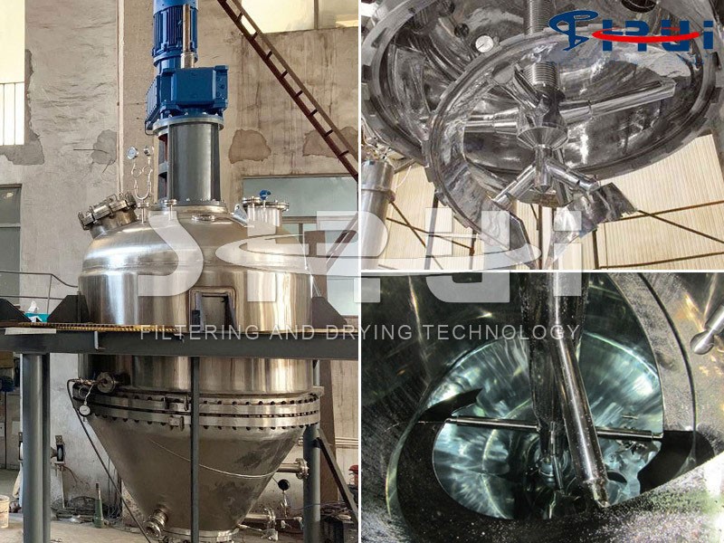 (2) 筒锥式过滤洗涤二合一水洗釜的洗涤液出口设置在锥体底部。当水位下至釜底时,打开减压阀门,将釜内的水份全部抽离,加快水洗效率,提高产品品质。