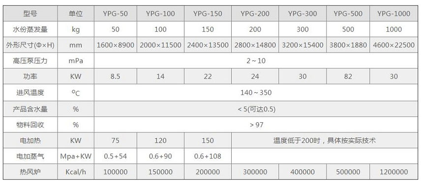 压力喷雾干燥机是一种可以同时完成干燥和造粒的装置。原料液可以是溶液、乳浊液或悬浮液,也可以是熔融液或膏状物。干燥产品可根据需要,制成粉状、颗粒状、空心球或团粒状。按工艺要求可以调节料液泵的压力、流量、喷孔的大小,得到所需的按一定大小比例的球形颗粒。